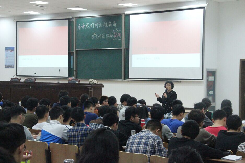 针对当前就业竞争激烈、简历初选严格的现状,张老师从简历制作流程、HR挑选简历标准、简历注意事项等多个方面为同学们就如何做出一张成功的简历进行了解析。对于简历的制作,张老师为同学们推荐了定位、内容、格式三步走的模式。在定位环节,张老师指出做好求职准备,勤于思考,找到这些问题的答案,是明确未来方向的必由之路;在介绍简历制作过程时,张老师结合实例,一扫同学们在以往制作过程中的误区,让大家明白要在保持简单、朴实、大方的基础上,突出求职意向和自身亮点,制作出与心仪岗位条件相匹配的简历;在简历细节上,张老师又详细介绍了简历格式上的要求,并从面试官的角度看问题的新颖角度,给在座同学带来了深刻的启发。