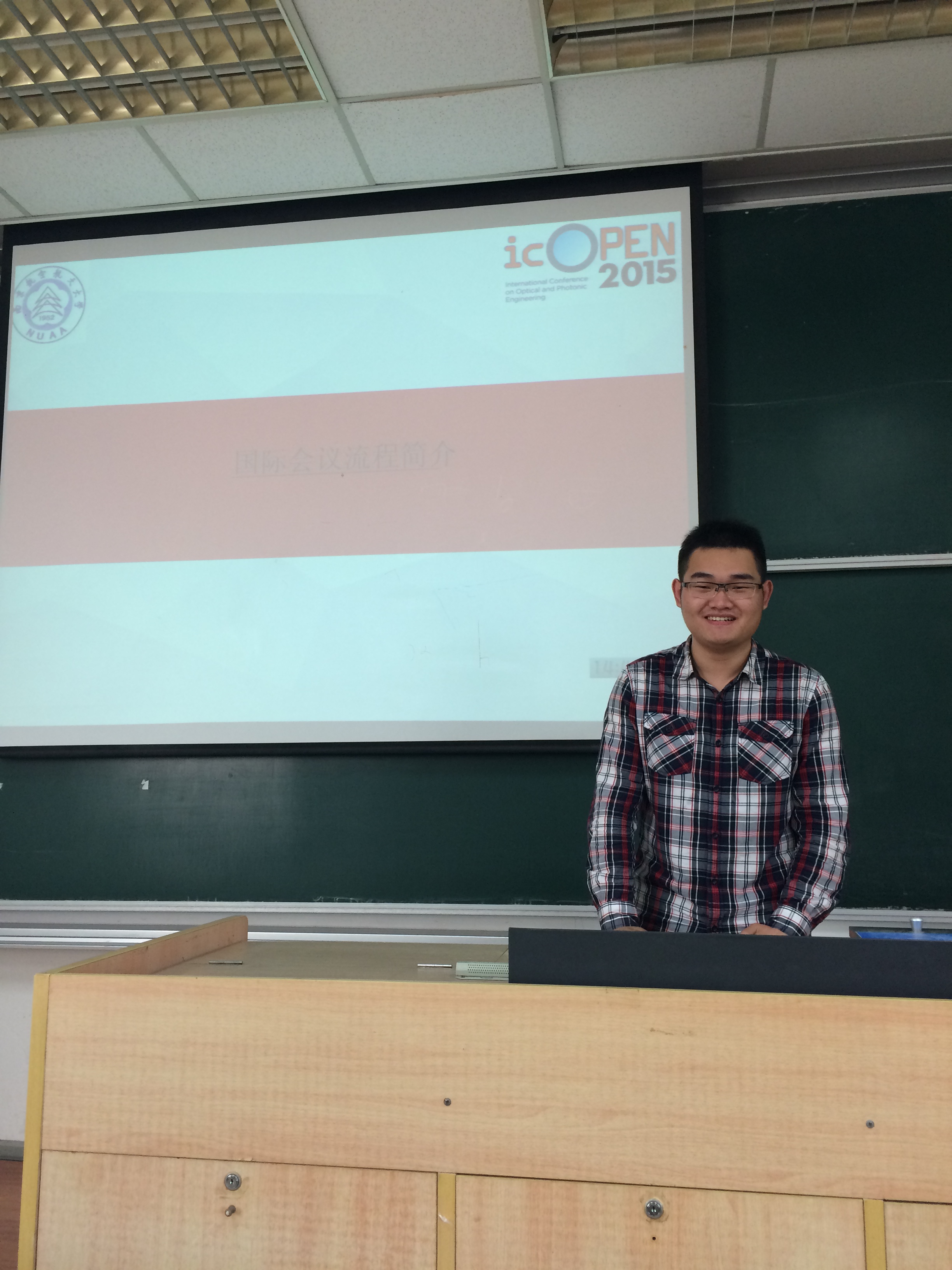 活动伊始,主持人王祥介绍了此次微沙龙的受邀嘉宾柳树林同学。柳树林同学是bob体育-bob体育app-bob体育官网 2014级硕士研究生,刚刚在新加坡参加完国际光学与光子学工程会议。该会议在国际上具有较强影响力,参与者以教授学者和博士居多,柳树林同学以硕士研究生的身份参加该会议,收获很大。此次邀请也是希望柳树林同学能够分享他参加国际会议的经验。