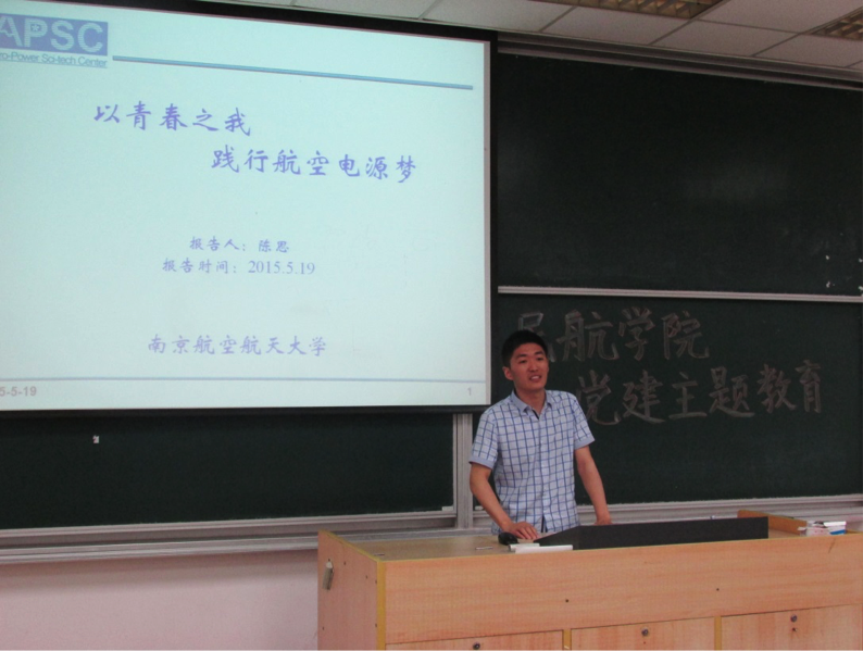 第二部分是由13级和14级支部的党员和积极分子代表分别上台汇报学习心得。来自13级支部交通运输专业的陈思同学就“以青春之我,践行航空电源梦”分享了自己的一些感想。他认为我们应该感到庆幸,因为在这所以航空为背景的大学,我们有更多更直接的机会去实践中国梦,以后我们工作的每一天不光是为了自己温饱,更重要的是,我们能真切地感受到,自己工作的每一个小时,都在为增强国家的综合国力而奋斗,这份骄傲可能是其他行业不能奢望的。来自14级支部空管专业的王媛同学向大家讲述了她对“人生的扣子从一开始就要扣好”的理解,通过自己学习的亲身经历,给习总书记朴素又生动的比喻增添了很多独特的见解。这些同学的心得分享也会在后期由党支部整理成稿,在我们bob体育官网 研究生联合党支部的微信公共平台的#学习天天见#专栏向大家推送。
