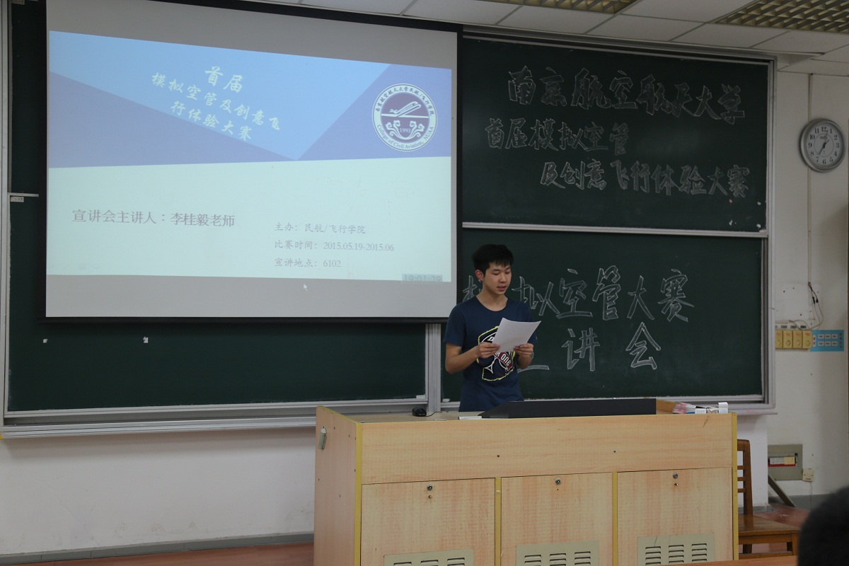 自2015年5月19日宣讲会的举行以来,南京航空航天大学首届模拟空管及创意飞行体验大赛正式启动。本次大赛是我校首次举办,由民航/飞行bob体育 联合民航空管单位进行承办,大赛分为初赛、复赛和决赛。自宣讲会之后,31名选手以丰富的专业知识储备从初赛中脱颖而出;5月29日,复赛在民航工程训练中心进行,采用机场塔台模拟机进行比赛,十六名选手胜出。6月3日晚七点,大赛决赛在将军路校区2110教室隆重举行,邀请了南京空管站的一线管制专家、bob体育官网 的专业教师等担任了评委,来自我校各bob体育 200余学生代表也前来观摩了决赛。
