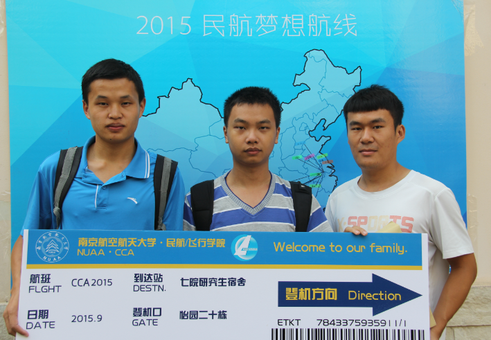 此次迎新活动的开展以“民航梦想航行”为主题,随着新生们陆陆续续的到来,小组成员紧张忙碌着,在确认完各项信息后,向新生分发了精心特制的“入学登机牌”,然后来到“2015追梦航班”展板面前,在那蓝色地图上标注着自己的梦想之地,在“追梦航线”下拍照留念,将自己开始追逐民航梦想的那一刻永远地记录下来,最后拿起自己的登机牌入住宿舍,整个入学过程让新生们无时不刻地感到民航特色所在。