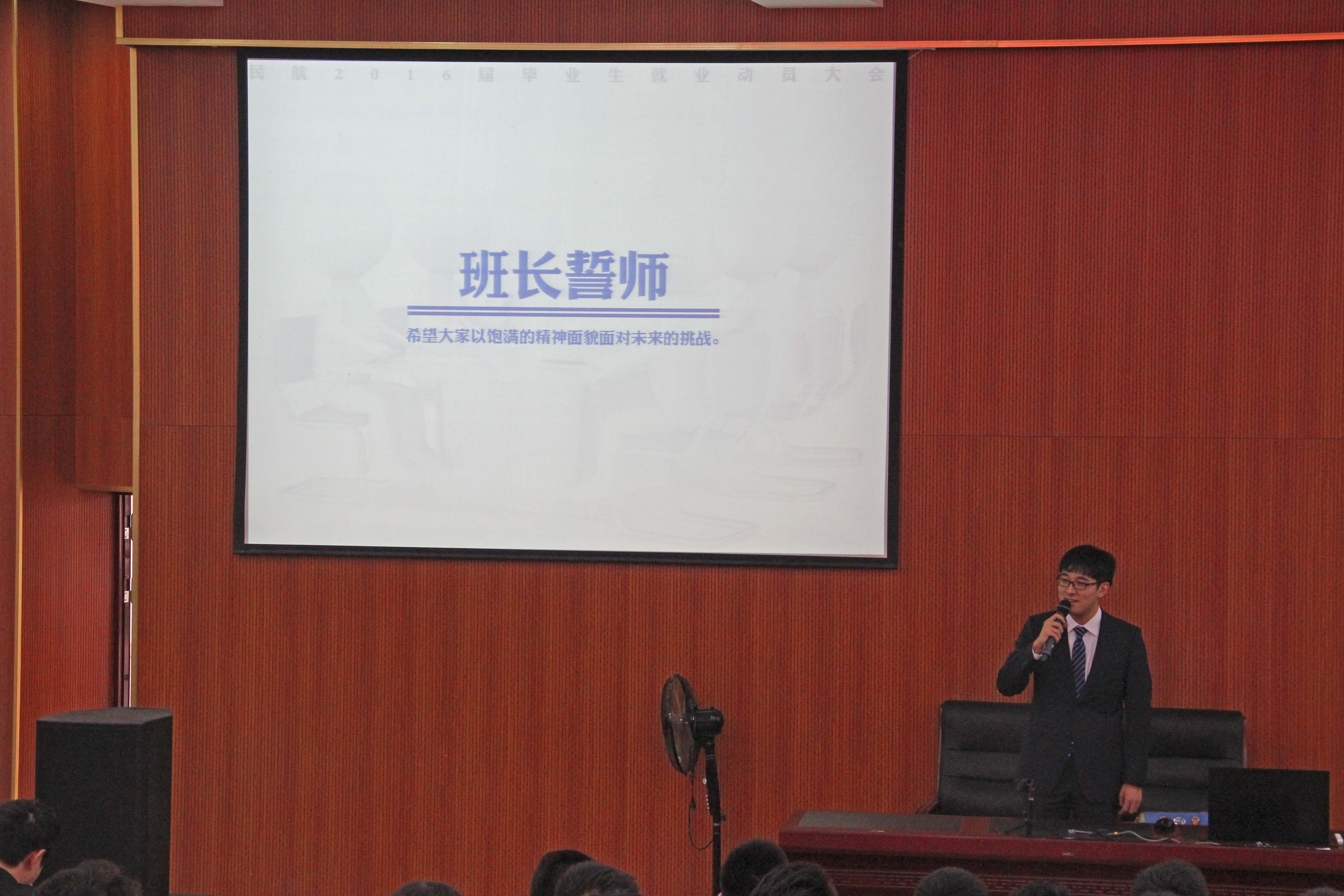 下午4点,三百余名同学西装革履,伴着音乐开始了本次大会。会上,辅导员刘思辰首先对三年来就业工作的系列准备进行了回顾,并发布了三项重要的就业信息——包括与往届学生情况的对比、就业意向的统计和各单位来校宣讲时间。学生情况的对比包括学习成绩和证书情况,指出了与往届相比,本届同学的差异;就业意向统计细分至各专业各单位人数,同样与往届各单位的实际招收人数进行对比,引导各位同学根据各单位的情况进行合理调整;招聘时间发布中,刘老师介绍全校将有130场招聘会,且bob体育 已向30余单位发出邀请,目前已有20家确定应邀前来,并发布了航空、航天、民航及其它各类单位来校宣讲的具体时间,增强同学自信。