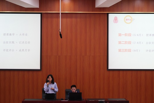 首先,傅成成老师从“实践是什么”的角度出发,向大家简要介绍了实践的具体内容以及形式,并和大家明确今年暑期社会实践的评分标准。随后,傅老师大致讲解“实践做什么”和“实践怎么做”,并提出今年bob体育 暑期社会实践创新架构:“一个导论、三项指导、多项培训、一场仪式”,使大家对社会实践活动的流程有了更加清楚的理解。在傅老师讲解的过程中,青协下属实践部成员登台亮相并作自我介绍。