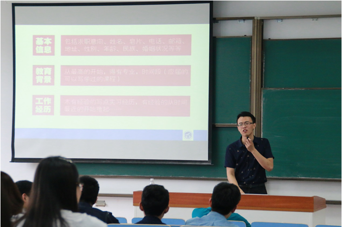 2015年5月27日,bob体育官网 14级研究生简历制作交流会在2202教室举行,康冲老师作为本次活动主讲人,为大家带来了一场精彩的简历制作培训课。