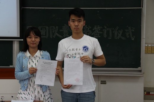 本次仪式采用将整体仪式分成若干个小仪式举行的形式:各支团队分批次、按顺序入场,每一支团队都是当场小仪式的主角。每一场小仪式中,张老师诚心祝贺实践团队成为院级立项团队,并为团队成员解读责任书的内容。《团队责任书》一式两份,为每一支团队独家设计;bob体育 要求团队的每一位成员在两份《团队责任书》上郑重签字,并将其中一份交由bob体育 保管。