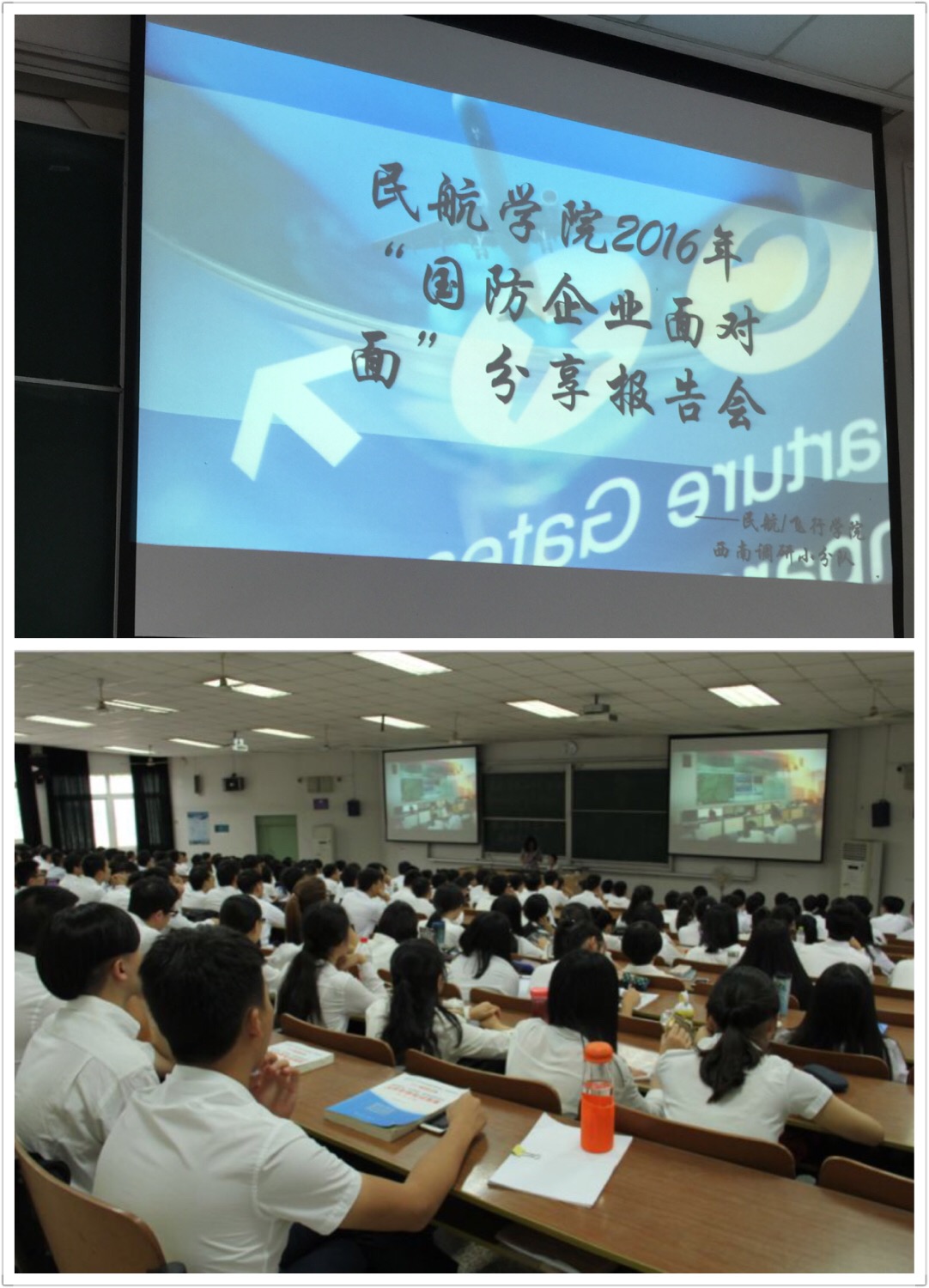今年暑假,由民航/飞行bob体育 牵头的国防企业面对面西南调研小分队走入成都和重庆的九家民航单位进行深度调研,并对调研结果进行了细致的整理总结。9月6日下午4点,bob体育官网 2016年“国防企业面对面”西南调研分享报告会于4101教室召开。