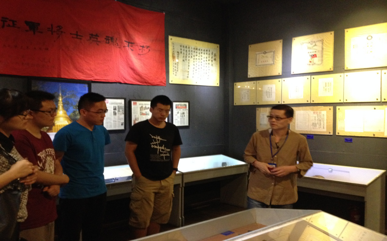 第三部分是静态讲解,同学们坐下来听陈老师讲解他与苏国宝老人的故事和他在博物馆做义务讲解员的情怀,结合着照片与文字资料,所有同学都受益匪浅并为之动容,博物馆馆长吴先斌先生以个人名义出资3000万历尽坎坷兴建博物馆和收集资料,陈刚老师无偿地在博物馆做讲解员,他们所做的一切都是不图回报的,正如陈老师所说,他做讲解员正好一年了,这次拍摄纪录片或许对他的讲解之路也意义重大,