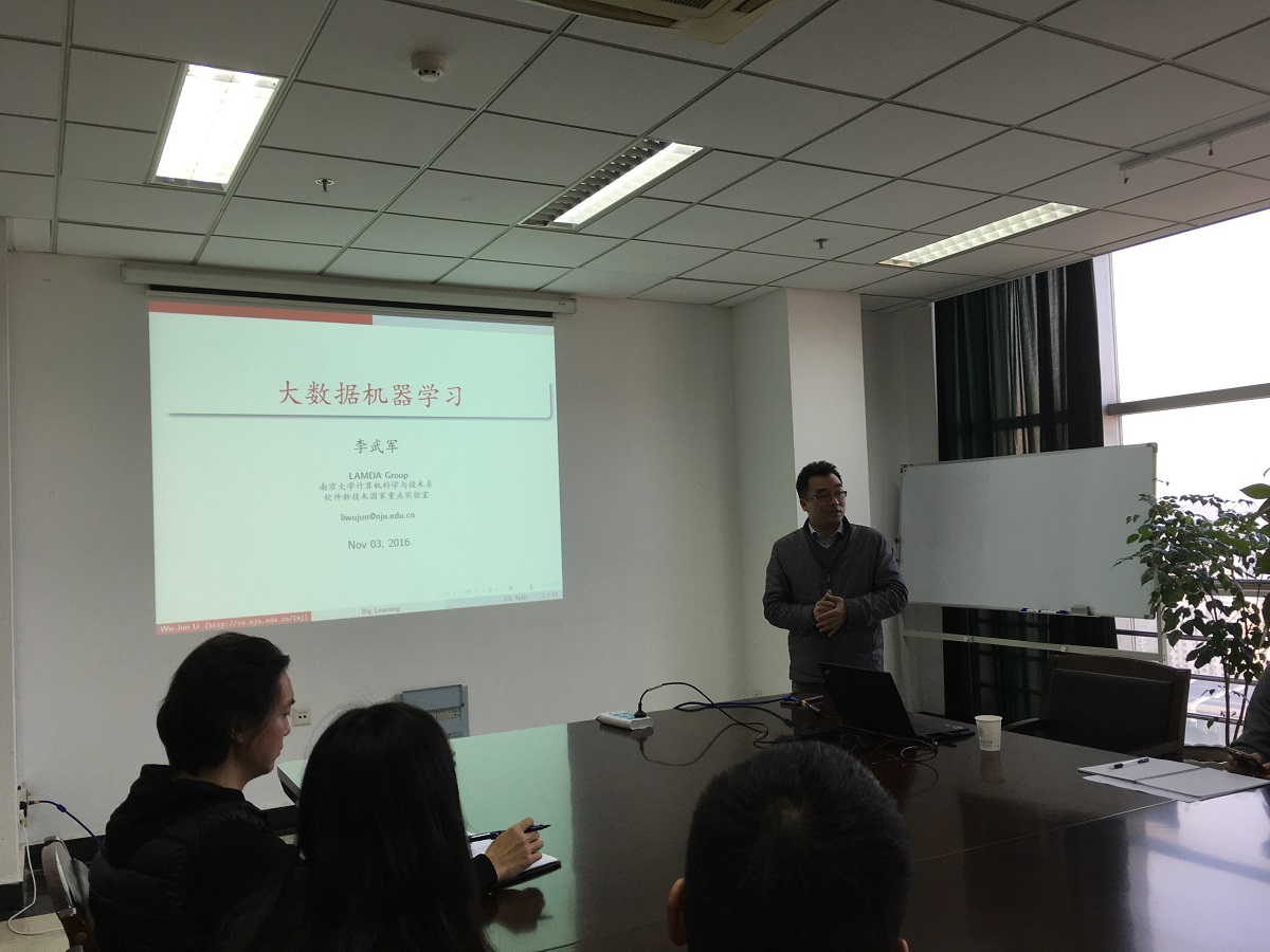 2016年11月3日下午16:00,南京大学博士生导师李武军教授在将军路校区1号楼2008会议室应邀为bob体育官网 师生作了题为“大数据机器学习”的学术报告。报告会由葛红娟副院长主持。