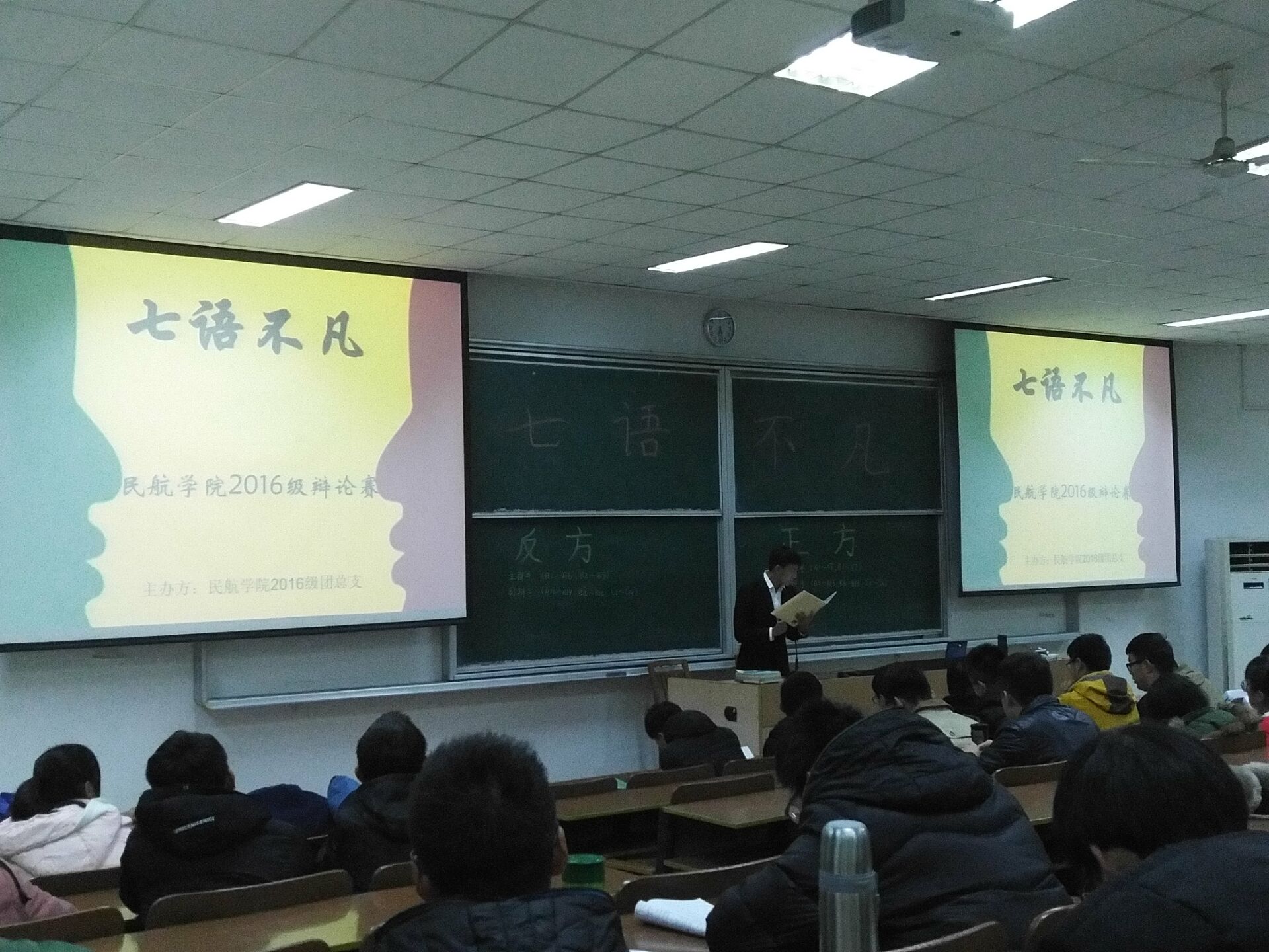 12月7日18点30分,bob体育官网 2016级在4201教室举行了“七语不凡”辩论赛初赛的角逐。2016级全体学生踊跃报名参加,十二个班级共派出了十二支优秀的辩手队伍,并派出各班主席团代表,共同进行了一场别开生面的辩论赛。同学们的妙语连珠将此次辩论赛氛围一次次推向高潮,使初赛圆满落幕,其中201班、301班、303班、401班、701班与702班的辩论队伍表现出众,成功晋级复赛。同时,评审团也结合辩手的综合素质,评选出了最佳辩手,他们将直接晋级决赛,进行最后的雄辩。