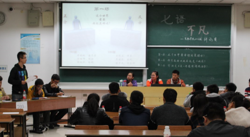 12月10号18点30分,bob体育官网 2016级在6301教室举行了“七语不凡”辩论赛复赛。初赛晋级的五支代表队和中心组代表队,围绕着三个具有鲜明时代气息的辩题,你辩我驳,不让高低。此次复赛中,201、303、703更胜一筹,同时,关博文、张涵、卢子钊、颜明辉被评选为“最佳辩手”并晋级决赛。