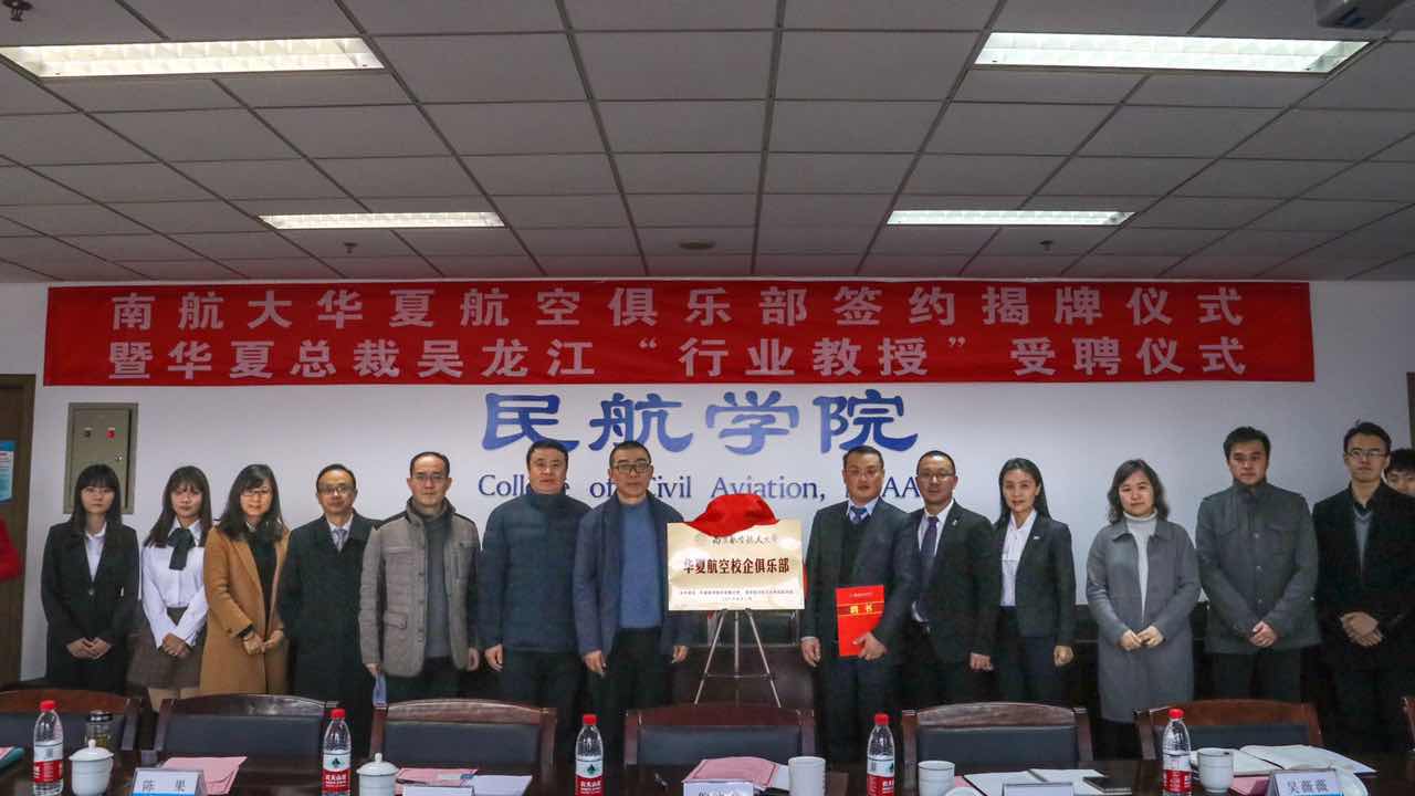 2016年12月15日,华夏航空股份有限公司签约揭牌仪式在我校将军路校区成功举行。华夏航空总裁吴龙江先生、AOC总监刘宏、人力资源部总经理尹巧妹、我校bob体育官网 党委书记倪晓众、副院长高健、副书记方正、各系主任、教师代表、学生代表等参加了活动。倪晓众和吴龙江代表双方签订校企合作协议并为俱乐部揭牌。仪式现场,吴龙江总裁还被聘为我校的“行业教授”。
