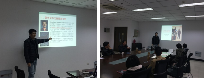 吴东苏副教授是国家公派高级研究学者及访问学者,2015年2月至2016年2月在美国休斯顿大学访学,访学期间与Jose Luis Contreras-Vidal教授合作研究基于非侵入式脑机接口的动力外骨骼系统,此次报告介绍了访学期间的部分研究成果。报告中介绍了脑机接口和外骨骼系统的关键技术、访学实验室的相关项目,并探讨了该技术在航空航天民航领域的应用前景。