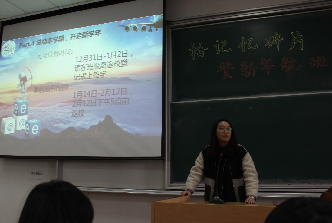 12月29日14时30分,bob体育官网 2016级在4202教室举行了以“拾记忆碎片,登新年航班”为主题的期末分享总结会。本次大会回忆感悟了本学期年级活动的精彩瞬间,反思总结了学习工作的优异或不足,并对下个学年寄予美好希冀。