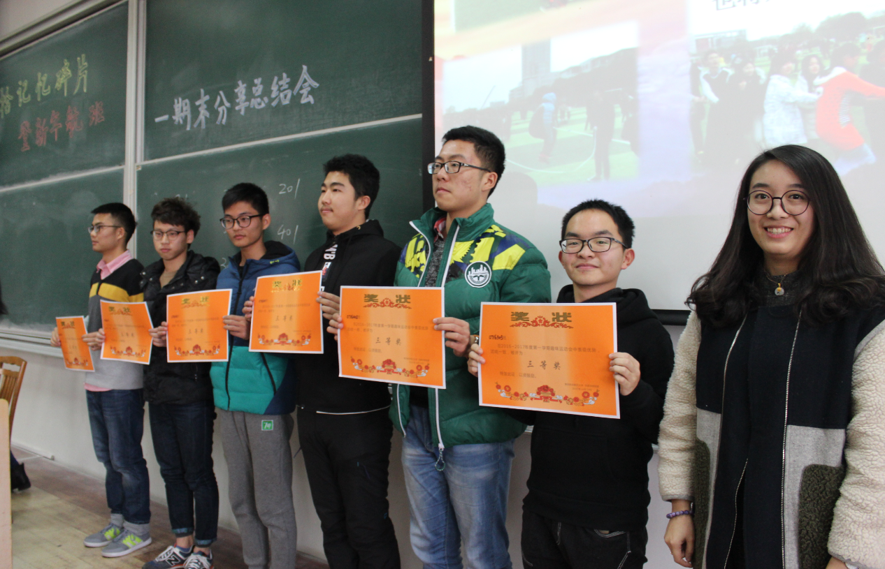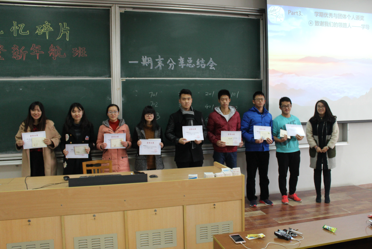 辩论赛暖场过后,屏幕放映了充满感动与回忆的“时光相册”。一张张照片拼凑出零碎的记忆:军训、趣味运动会、牵手计划……一学期以来,我们在南航寻找到了一个全新的自己,同学间的感情在升温,学习生活的质量在升华。在我们的记忆里留下青春的足迹,留下优秀的身影,我们共同为我们的成长颁奖!伴随荣誉乐声,辅导员刘思辰老师为军训先进个人、先进优秀班级颁发奖状,并鼓励全体同学在新年新篇章中再创佳绩。2016级全体师生也为2015级优秀学导准备了感谢信与荣誉证书,并铭记他们对新生无私的帮助与指引。