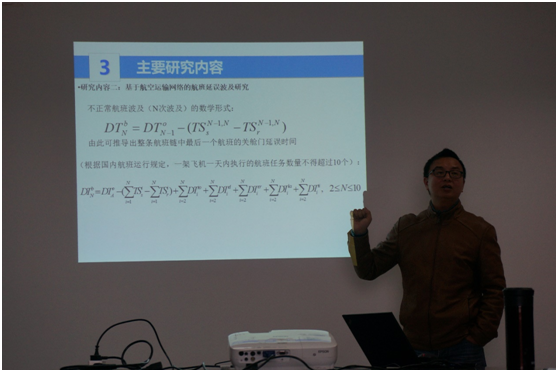 邵荃副教授是国家公派高级研究学者及访问学者,2016年1月至2017年1月在美国南佛罗里达大学访学,访学期间与Yu Zhang副教授合作研究基于灾害演化动力学和不确定因素分析的航班延误波及效应研究,此次报告介绍了访学期间的部分研究成果。报告中主要介绍了目前项目组和国内外关于航班延误在民航运输网络中扩散蔓延机理的最新研究,以及将该研究成果如何应用于实际运行中航班恢复的问题。