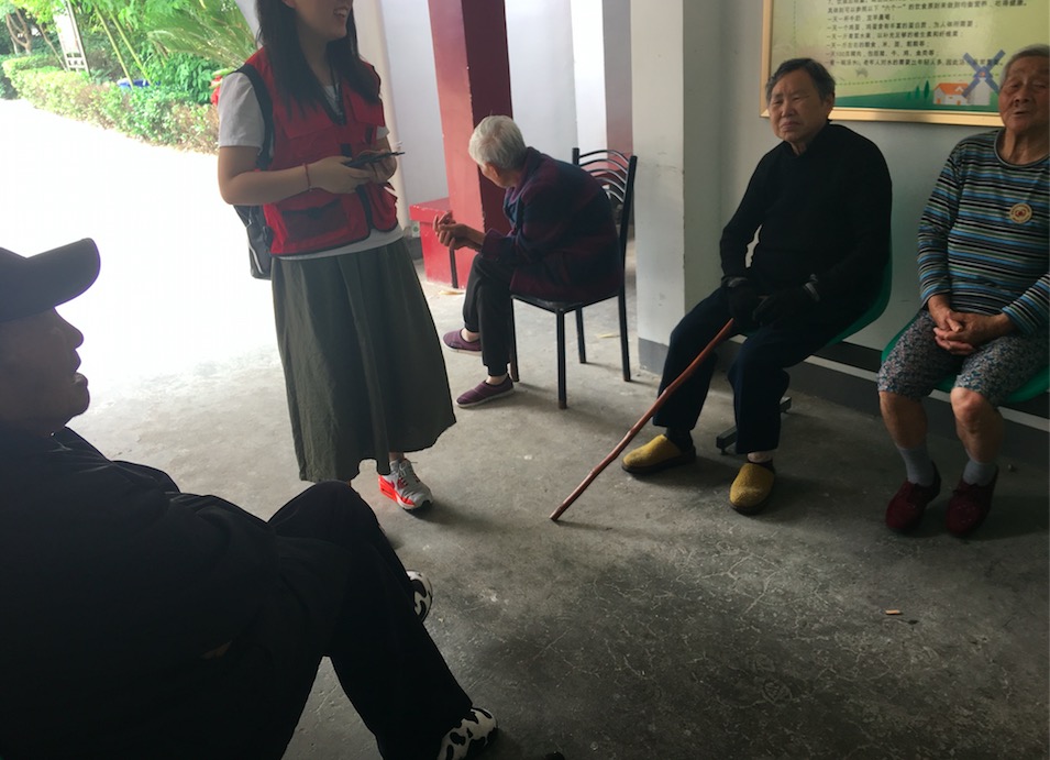 一来到敬老院,坐在过道的亭子里乘凉的爷爷奶奶们热情地与我们打招呼,一位身着迷彩服的老爷爷与我们郑重的握手,这是一位耄耋老人,是一位曾经的共产党战士。在敬老院正门的侧边,我们看到了“学党章党规、学系列讲话、做合格党员”的展览标语板,敬老院的一些老党员们也时刻在跟进改革开放时代,不断学习并恪守党章党规。