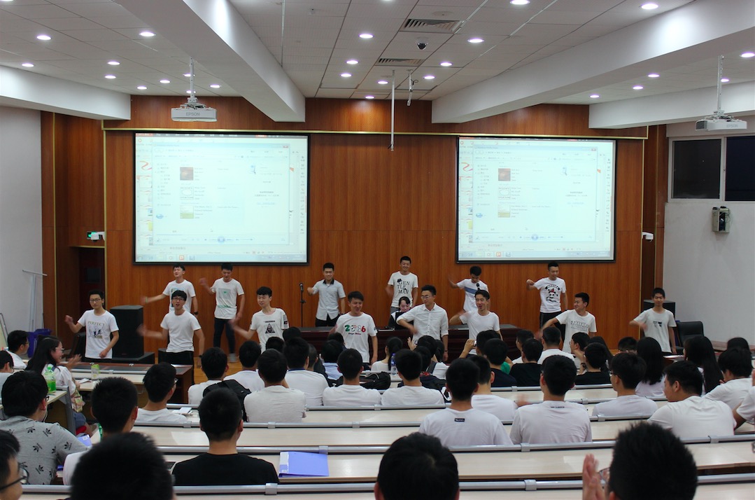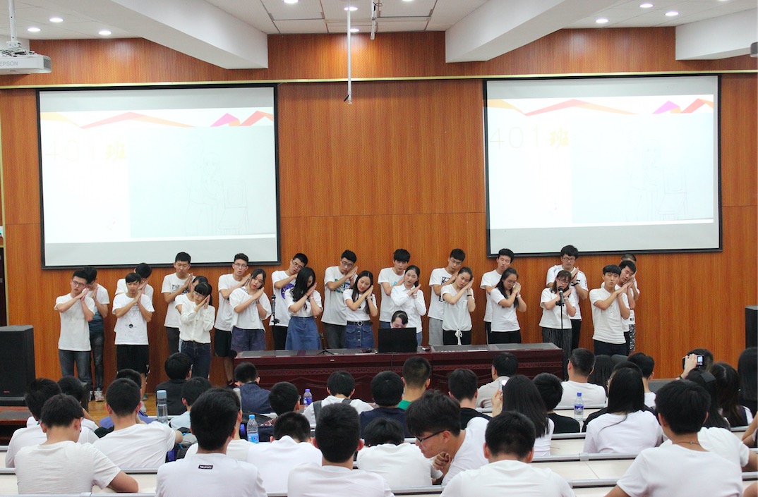 比赛中,各班同学用饱满的激情和高亢嘹亮的歌声表现自己,103班的串烧表演独具匠心,既有《中国军魂》与《龙的传人》体现中华民族的傲骨,也有汇入舞蹈的《青春修炼手册》也让全场掌声不断;而后的红歌更是将比赛推向高潮,101班《当那一天来临》气宇轩昂,气势磅礴,体现了新时代青年的爱国之情。在欣赏歌曲之余,701班在合唱曲目《没有共产党就没有新中国》中穿插小小的话剧,在给同学们带去了艺术的欢笑的同时,也使大家回忆起沉痛的历史,陷入深思。