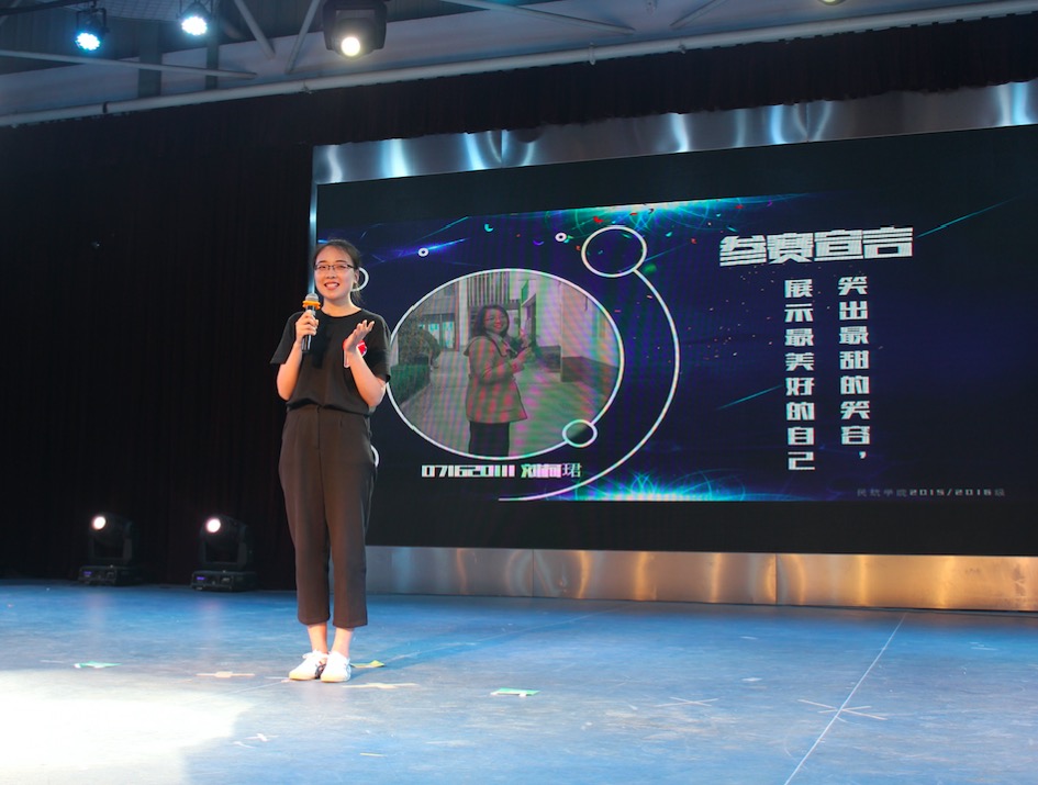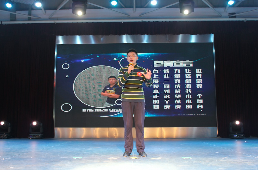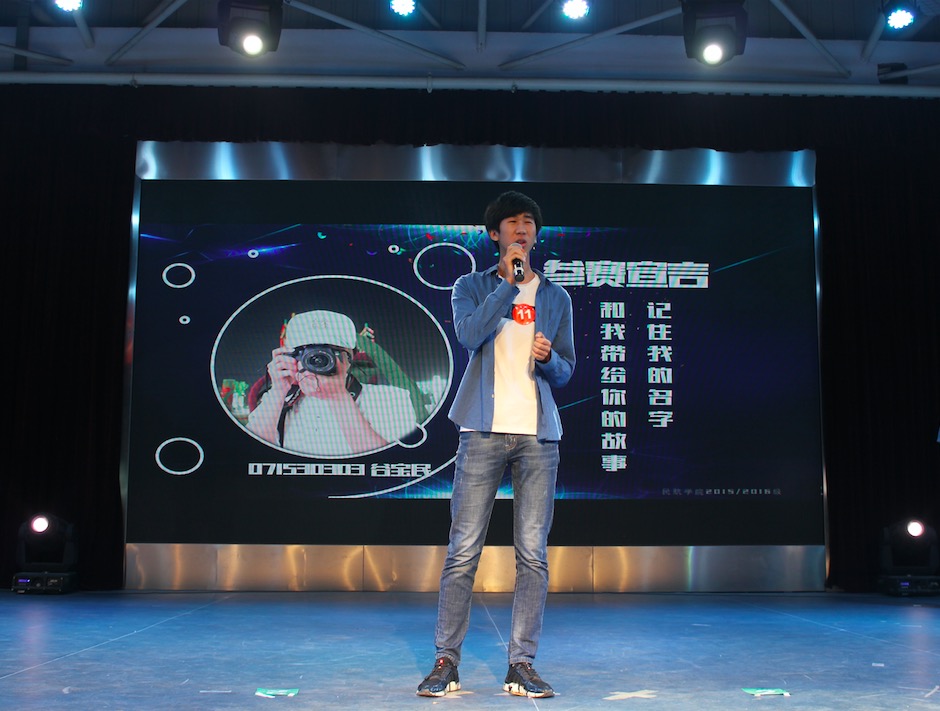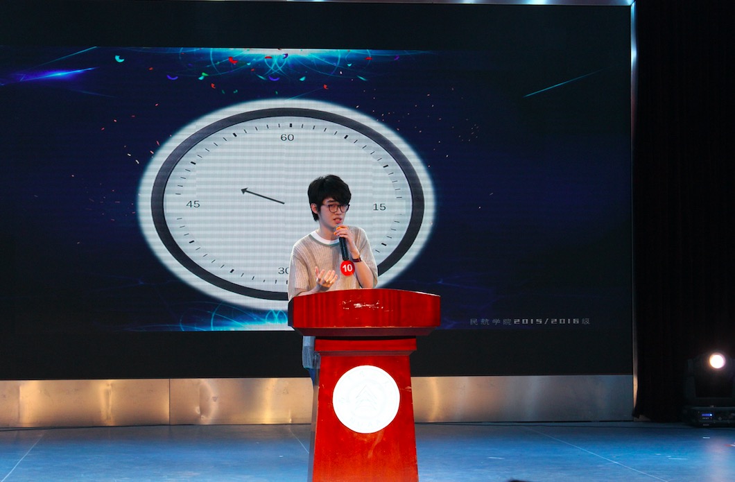比赛的第一轮名为“说出你的故事”,即选手进行九十秒的自我介绍。有的同学用自己被取遍的外号来介绍一路成长的自己,有的同学结合家乡的景色和文化衬托自己的性格,大家都气宇轩昂地用不同的方式和角度介绍了自己。