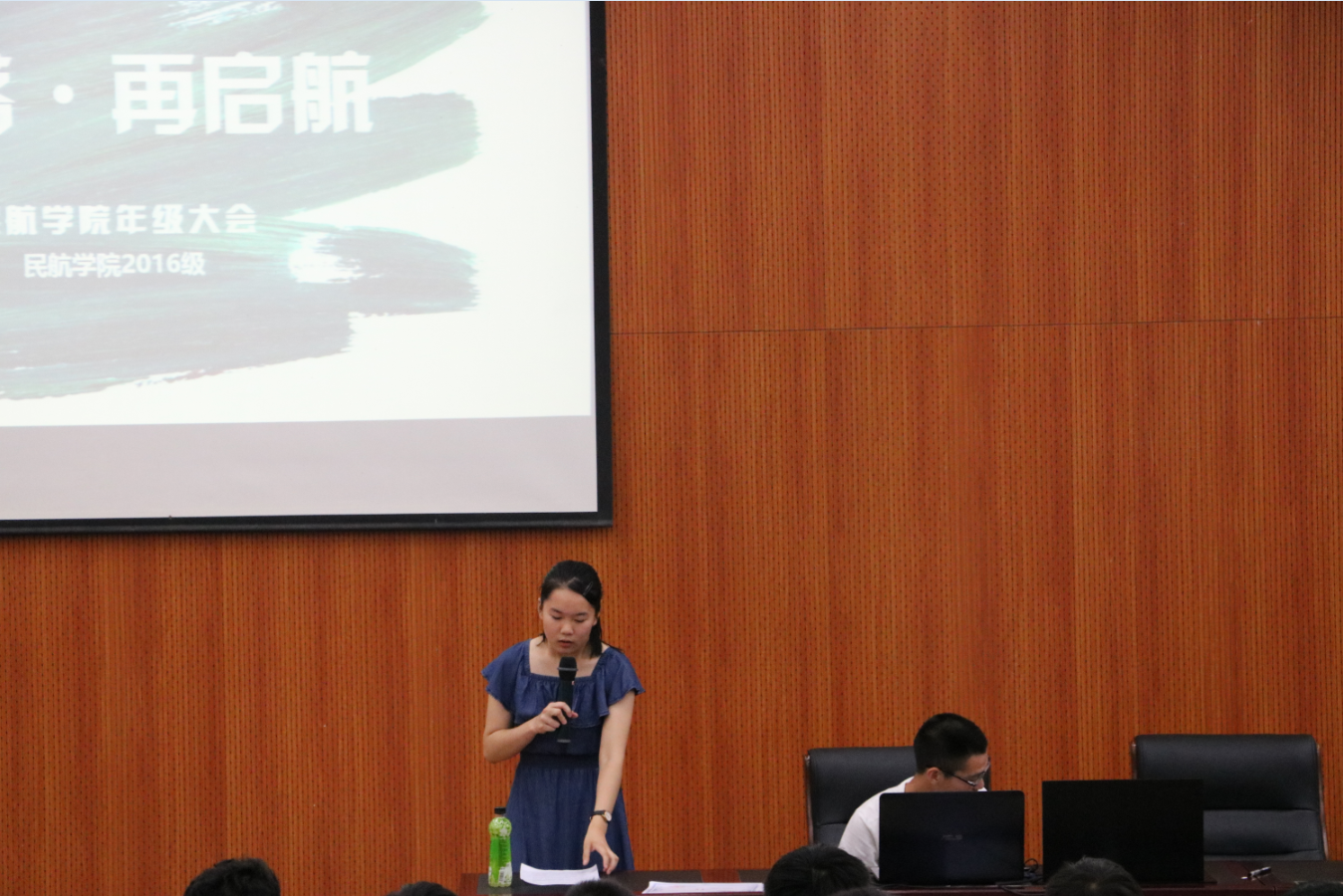 年级大会的第一版块即为“民航大事说”。同学们通过一张张活动照片回忆我们这一学期走过的路,经历过的事。演讲比赛的妙语连珠、篮球赛的团结拼搏,都是我们生活美丽的剪影,平淡而又充满乐趣,繁忙而又充满斗志。