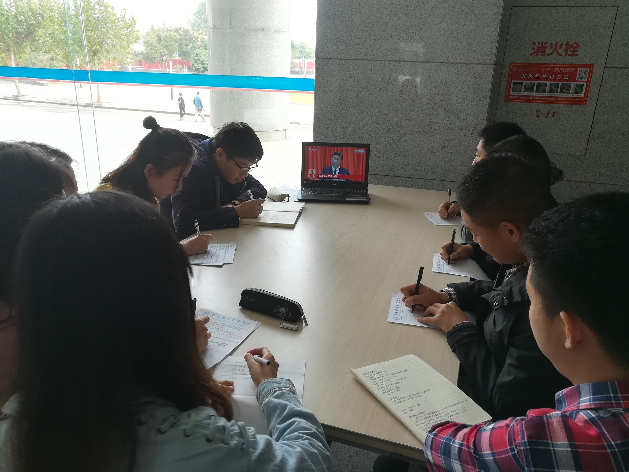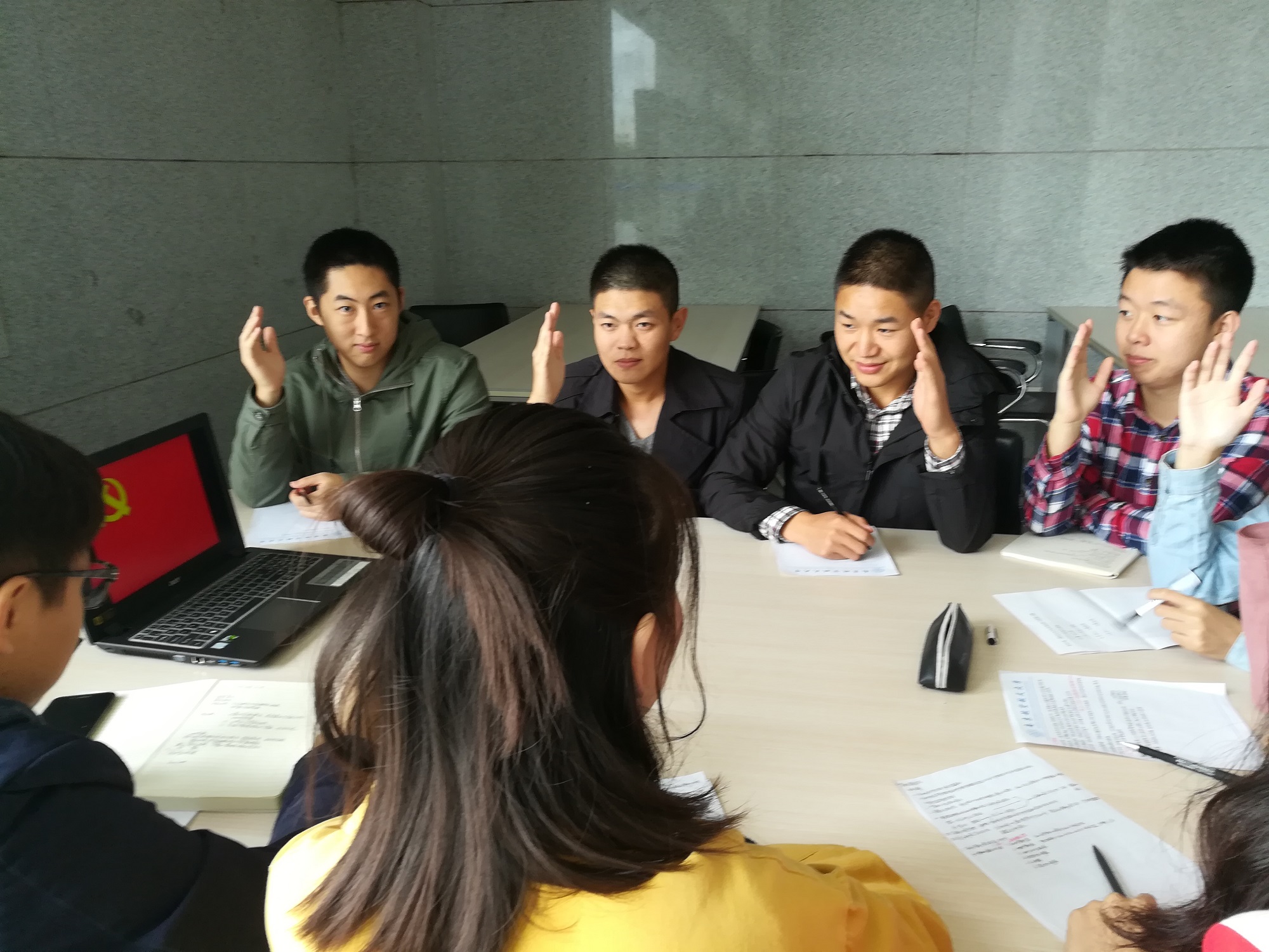 10月18日15点,在观看党的十九大开幕式直播之后,bob体育官网 14级党支部组织全体党员模拟十九大的会议流程,于一号教学楼一楼大厅开展“迷你十九大•我们有话说”交流活动。大家围绕民航大发展的话题,结合专业知识及行业现状,各抒己见,为我国民航发展献计献策,以实际行动迎接党的十九大。会议由党支部小组组长于金锦主持。