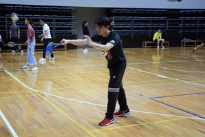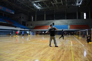 下午三点四十分,比赛还未开始,但参赛选手们已经陆续进入体育馆,用行动表达对此次比赛的重视,而热身时的谈笑却又透露着“友谊第一”的原则。此次比赛分为男单,混双两个项目,采取的是三局两胜的赛制,每局12分,两次率先得球12分的队伍获得胜利。