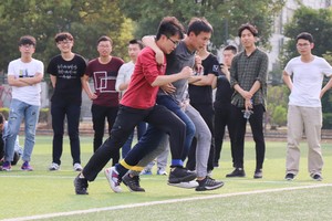 正午时分两个年级的中心组成员便开始布置场地。下午2点整由主持人和两个年级的辅导员共同主持开幕仪式,比赛期间,朱老师和范老师也参与其中,当起了裁判,给比赛更增添了一道亮丽的风景线。虽然本次活动主题为“趣味运动会”,但体育的竞争精神也有所体现。每支联队在比赛时都有裁判员在旁,四场比赛单独计分,最后每队得到的总积分计算成最后得分然后进行总排名。下午5点左右,比赛圆满结束,最终0716301班和0717703班组成的联队以45分的好成绩夺得冠军,获得本次趣味运动会的丰厚奖品——3个肯德基全家桶和40块金牌巧克力;第二名则被0716701班和0717302班组成的联队以43分的成绩夺得;第三名为0716401班和0717101班组成的联队,并获得丰厚奖品。