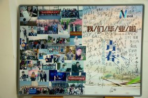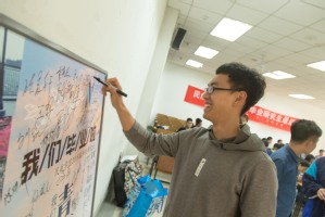 班会尚未开始,即将毕业的研三毕业生们便纷纷在教室就位,并在宣传板上签名留念,为这即将开展的“最后一课”热场。