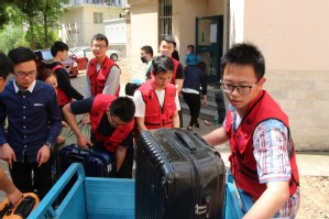 烈日炎炎,却挡不住大家的热情和干劲。在充分准备、细致分工的基础上,bob体育官网 15级党支部的党员们和公寓服务中心党支部的工作人员们万众一心、齐心协力,帮助14、17级学生搬运行李,有序高效地完成了行李的搬运工作。