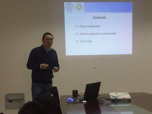 1月15日,公派留学回国教师、bob体育官网 胡荣副教授在将军路校区1号楼为bob体育 师生做了题为“Airport congestion and airport congestion pricing”的学术报告。报告主要介绍了胡荣副教授在美国南佛罗里达大学访问期间所开展的相关研究工作,重点介绍了机场拥挤带来的航空公司、旅客以及环境的外部成本的计算方法,机场拥挤收费模型以及缓解机场拥挤的航空时刻调整、合并方案等。报告中结合案例进行讲解,深入浅出,为师生们了解机场拥挤收费模型与方案提供了思路。