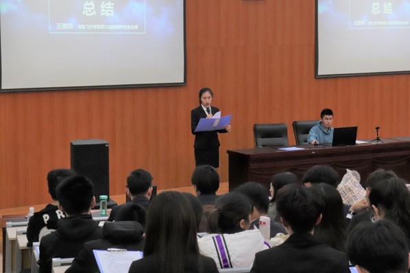 本次述职大会由视频《院会工作回顾》拉开帷幕,民航/飞行bob体育 学生会主席王翔羽以“回望前路,展望未来”为主题展开演讲,回顾了第22届院会工作历程并提出下半年院会发展方向,旨在带领院会更上一层楼。