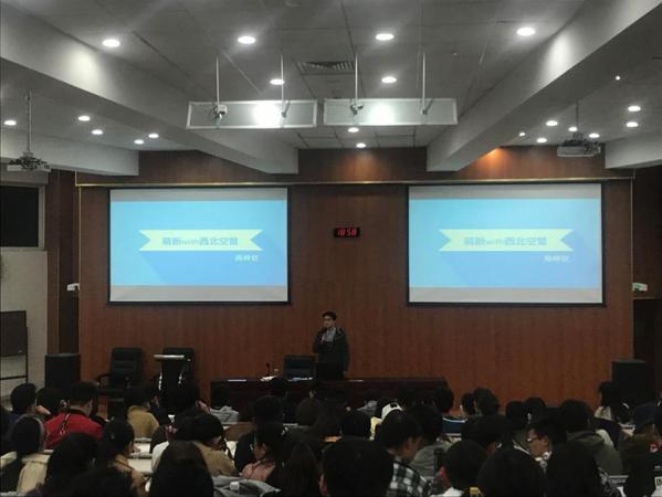 接下来朱岚老师向同学们推出年级新的学习交流模式:翻转课堂。邀请了去年参加“空管探秘计划”的周梓钦同学向大家讲述了暑期于西北空管局社会实践的经历和自身感悟。