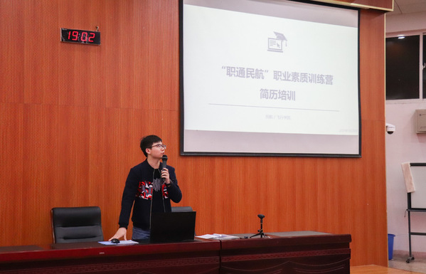 同时,在本次培训中康冲老师从民航专业的角度出发,对张月铭老师的简历指导做了一些补充。康老师告诉同学们要认清民航的形势,认清岗位需求,努力塑造一个符合岗位需求的自我,并在简历中与岗位需求相贴近,同时告诫同学们要去除限制性信念,求职时将眼界放开。