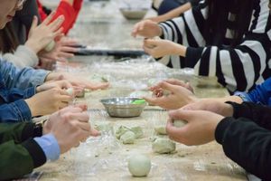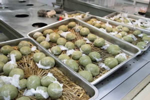 从揉搓面团到填入馅料,再到包裹塑形,虽然不少同学都是第一次动手,但是同学们都在不断探索其中的诀窍,努力尝试。很快,上百个肉松馅和豆沙馅的青团就从同学们的手中诞生了。