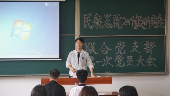 首先,联合党支部书记刘睿禹针对本学期工作安排进行发言。他回顾了支部成立以来已完成的工作内容并就下一阶段“庆祝新中国成立70周年及中国民航成立70周年”主题活动、党日活动及预备党员转正大会和民主生活会等方面的工作进行了具体的介绍和安排,强调了各项工作的完成节点及注意事项。此外,刘睿禹还通过问卷互动广泛征求党员对工作开展的期待和建议。