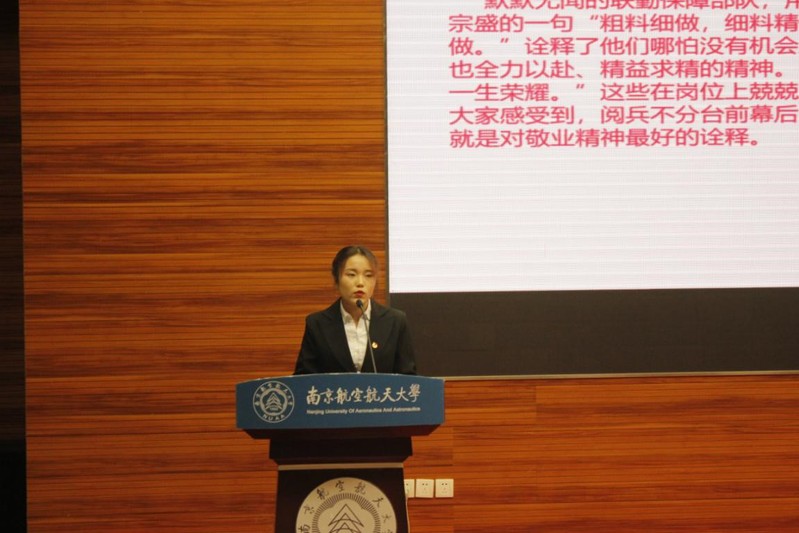 第四组同学利用我们熟悉的民航榜样论述了民航人一心一意为蓬勃发展的民航事业而献身,他们爱岗敬业,坚守自己的职位,甚至于危难时刻仍不忘履行职责,他们不畏艰辛,吃苦耐劳,像螺丝钉一样牢牢的守在自己的位置上。