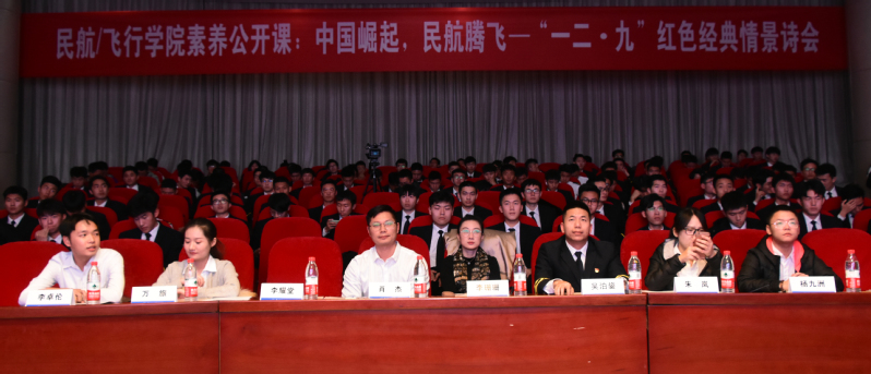 12月13日晚,民航/飞行bob体育 在将军路校区一号楼四楼报告厅举办了2019年素养公开课:中国崛起,民航腾飞—“一二·九”红色经典情景诗会。艺术bob体育 李珊珊老师,bob体育官网 团委书记肖杰,辅导员朱岚、吴泊鋆、王爱伟、万旅、杨九洲、李卓伦、李耀堂以及三百余名同学参加了此次诗会。