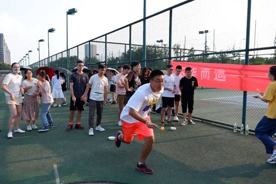 夹乒乓球最为游戏的最后一个环节,同样做到了有趣并且加深同学间的了解。过程中队员不仅要精准的夹起乒乓球,同时要尽可能稳稳地运球,非常考验团队协作。