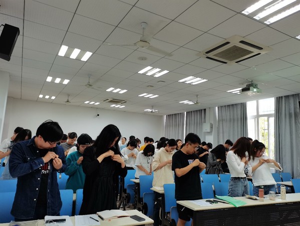 第三个部分是共同佩戴党徽。在该环节,全体党员起立并庄重地给自己佩戴好党徽,这不仅仅是一个简单的佩戴动作,也意味着他们从今天开始正式成为了bob体育官网 硕士20级联合党支部的一员。