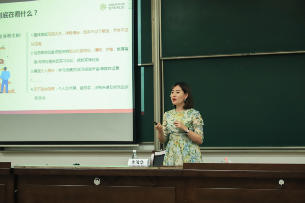 培训会中,李经理就自己的实际经验总结出了同学们在简历中常犯的错误,从HR筛选简历时到底在看什么、如何制作一份好的简历、别的HR不会告诉你的“小技巧”,三个模块展开培训。通过一个个范例,从基本信息、教育经历、实践经历、所获荣誉、技能和自我评价等方面,手把手教同学们制作一份优秀的简历,同学们学习到了满满的简历制作“干货”,更加清晰地认识到简历制作的重要性,避免了繁琐复杂的语言表达方式,更加着眼于认识自己、挖掘自己,突出自身的优势和特长。