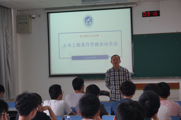 耿飞老师做总结动员,土木工程是一个古老传统但仍充满活力的行业,就业前景广泛。耿老师详细分析了升学就业的抉择、bob体育 高水平的科研平台和雄厚的师资力量以及业内较高的社会声誉。鼓励大家通过考研提高自己的专业知识与科研能力,用恒心和信心积极面对考研以及就业,充分利用好大学剩下的时光,为自己美好的未来拼搏奋斗。