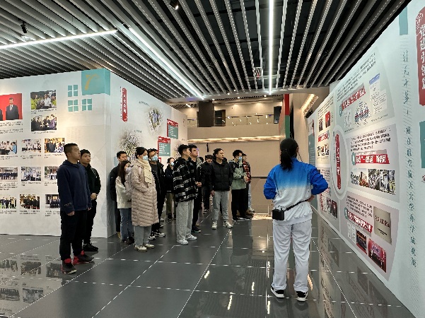 在讲解员逐一讲解的过程中,大家一起回顾了南航“非凡十年”的辉煌历程,深刻体会到南航校训“团结、简朴、唯实、创新”的丰富内涵。一张张生动的历史照片,一项项鼓舞人心的荣誉,彰显着一代代南航人努力践行航空报国、航空强国的初心与使命。同学们一路参观、一路思考,用心感悟其中蕴含的伟大南航精神,思考新一代南航人的责任与担当。