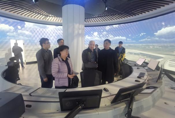 座谈会后,田新民一行参观了bob体育 可靠性与适航技术研究中心、360°全景塔台模拟实验室和御风园航空航天教育教学实践基地。