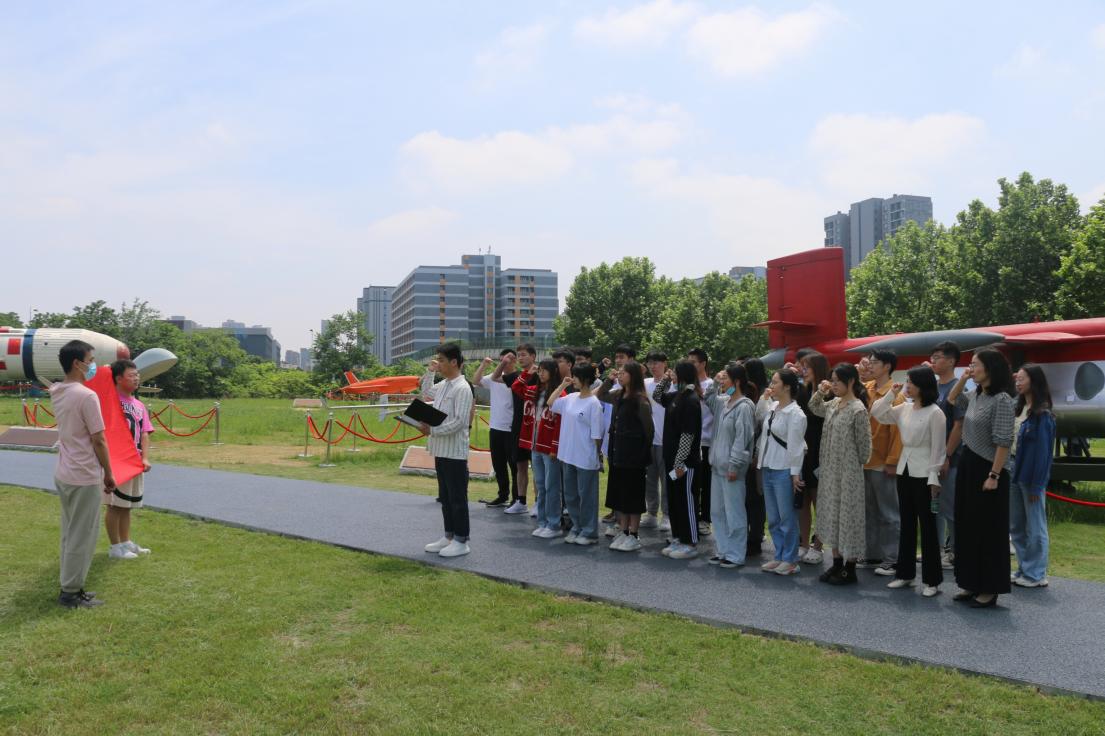 与平时的讲解不同,李君除了介绍航空器的基本信息外,更多的是以亲历者的身份,向师生党员们讲述筹建“御风园”背后鲜为人知的感人故事。李君告诉大家,御风园的顺利落成,是对南航“团结、简朴、唯实、创新”校风的生动诠释:团结——正是有了南航师生、校友们的爱心接力,以“鲲龙”、“枭龙”、歼8-Ⅱ、K8、多台航空发动机为代表的19架大国重器才得以顺利入驻“御风园”;简朴——积极响应学校节俭办校庆的号召,校友们不惜“踩烂”相关部门的门槛,想办法缩减修复工人的食宿及拆卸清理费用,最终将成本压缩至原计划八分之一;唯实——疫情爆发,师生校友们与时间赛跑,专程赶到一线在40度高温的外场现场办公,数次遭遇全城静默,鲲龙抢在西安封控前一天运出,为确保工作进度不受影响,师生校友们始终坚持实事求是,事不避难,最终一个个难题迎刃而解;创新——在土地资源本就紧张的高校,在距离校庆不足150天的时间内,在疫情封控等多种因素的夹杂下能够顺利落成,“御风园”本身就体现着南航人开拓创新攻坚克难的优秀品质。