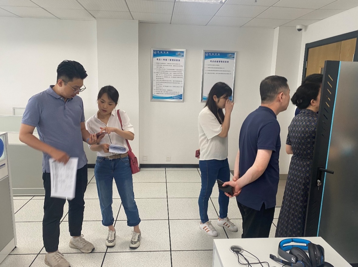 评审会上,评审组首先听取了南京航空航天大学考区管理员关于南京航空航天大学考点的申请、筹备、建设等情况。随后,评审组采取审查文档、现场检查、集中座谈相结合的方式开展了详细的评审工作,逐项依规审查了南京航空航天大学考点的资质档案材料及考试通知等文件的归档情况,并对考点的考生侯考室、考生机考室、配套设施设备等进行了现场审核。