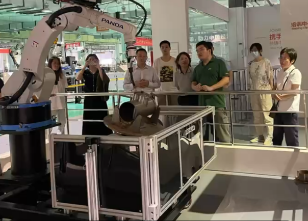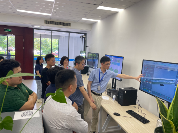 在实景参观环节,校企双方先后参观了熊猫机器人展示中心、数字城市展厅、数字产业研究院科研实验室和通信产业园展厅。各位老师在现场与技术人员进行了深入的交流和探讨,共同探索智慧产业的发展前景。