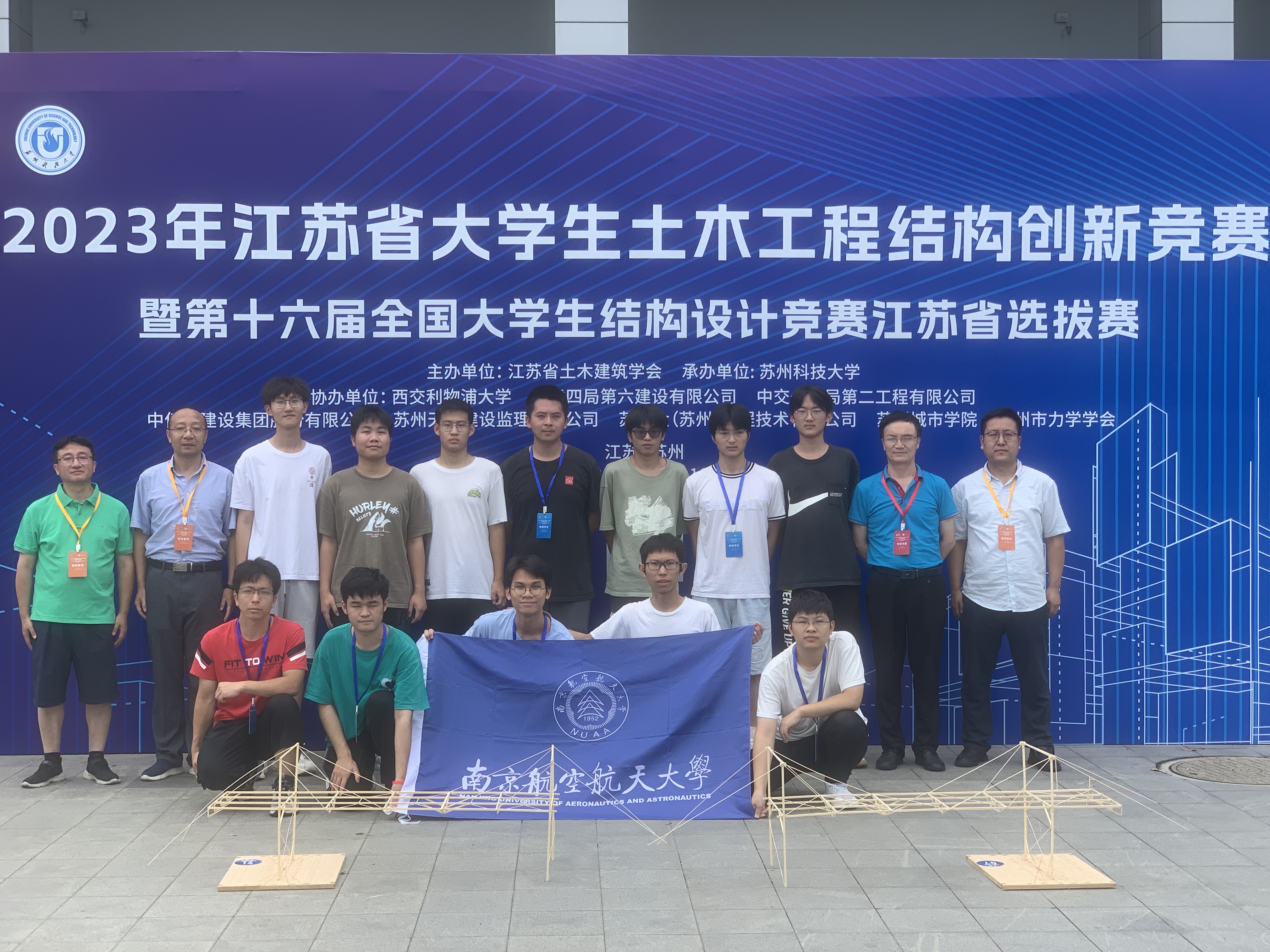 2023年7月13-16日,2023年江苏省大学生土木工程结构创新竞赛暨第十六届全国大学生结构设计竞赛江苏分区赛在苏州科技大学举行,bob体育 由吴瑾老师领队,唐敢、王法武和程晔老师指导。