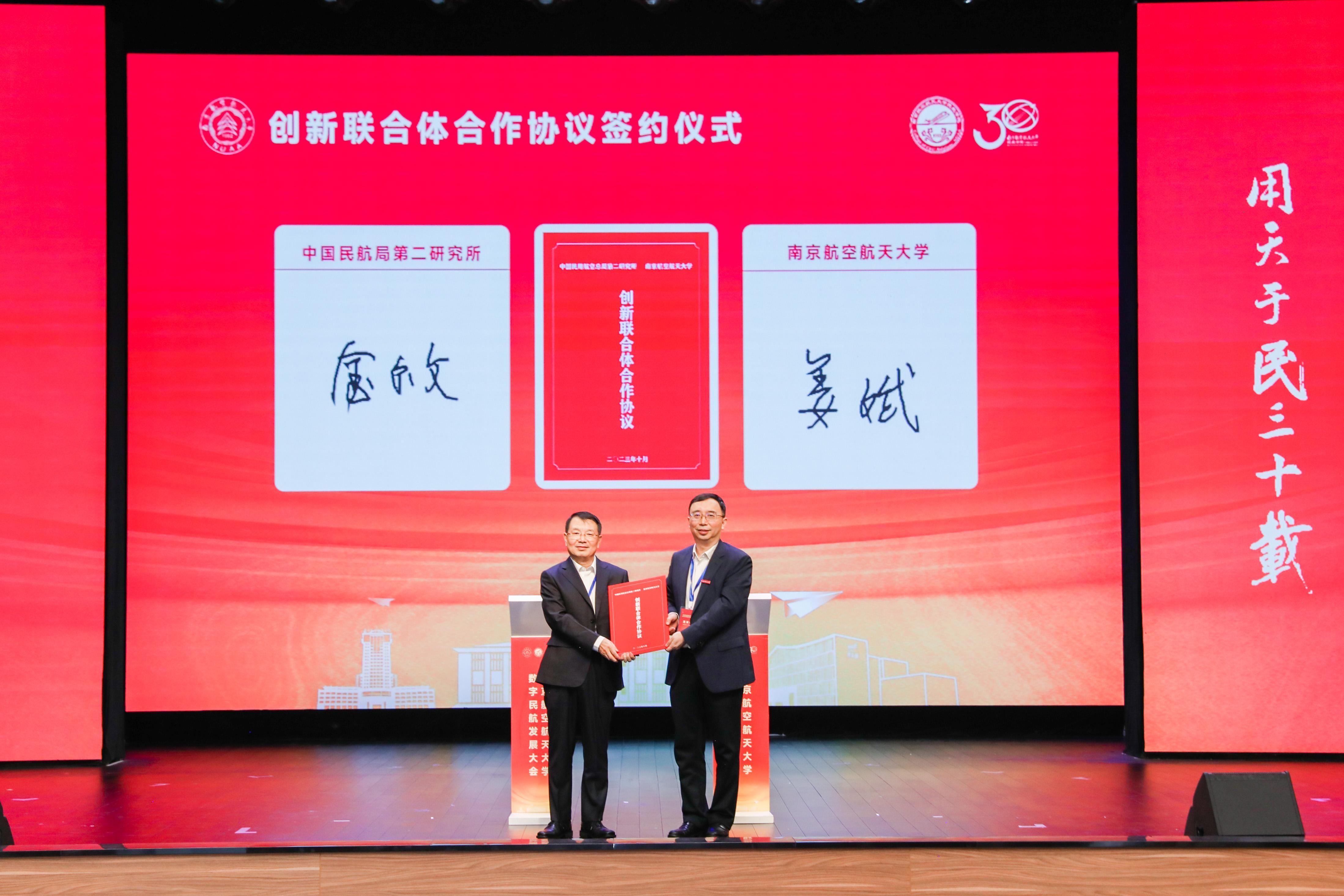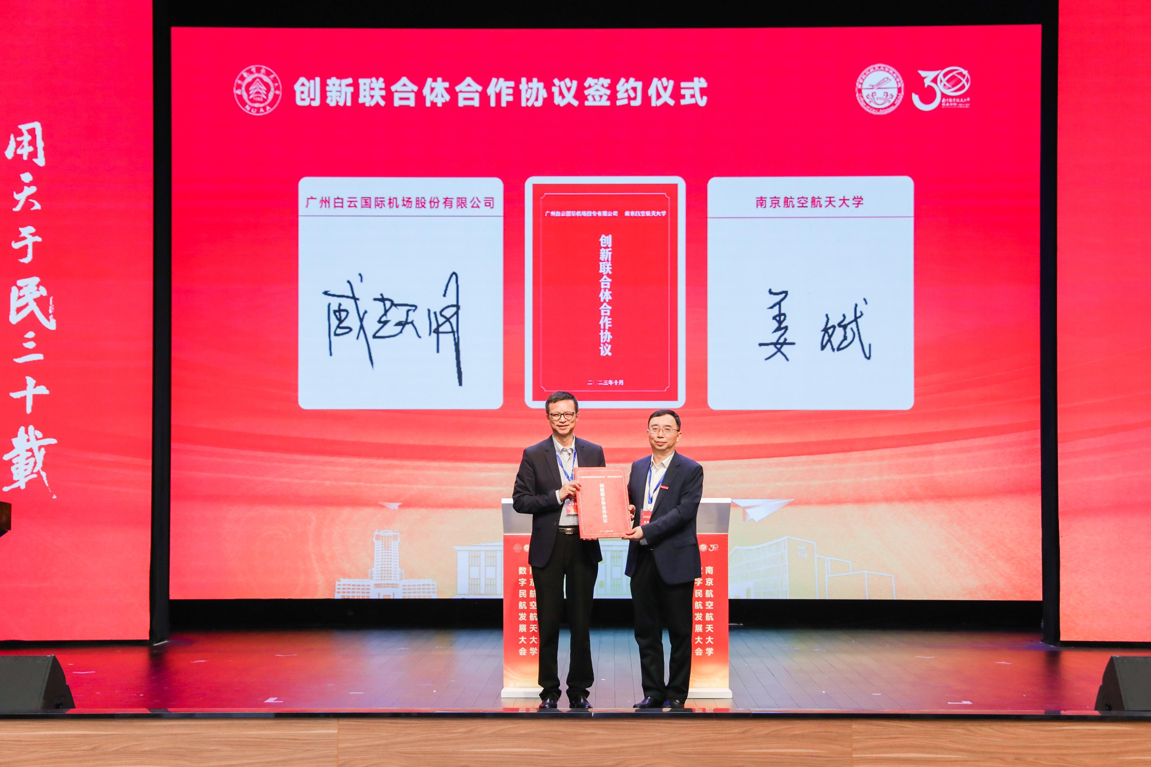 中国民航科学技术研究院总工程师李敬、中国民航局第二研究所副所长金尔文、广州白云国际机场股份有限公司副总经理戚耀明分别与南京航空航天大学副校长姜斌签署《创新联合体合作协议》。创新联合体坚持面向“十四五”民航产业发展新格局,聚焦智慧民航和交通强国民航篇章建设,全面深化产学研用融合,建立人才联合培养、基础研究支撑、工程技术攻关、成果转化应用的科学高效机制,构建“共创、共享、共赢”的创新发展新生态。