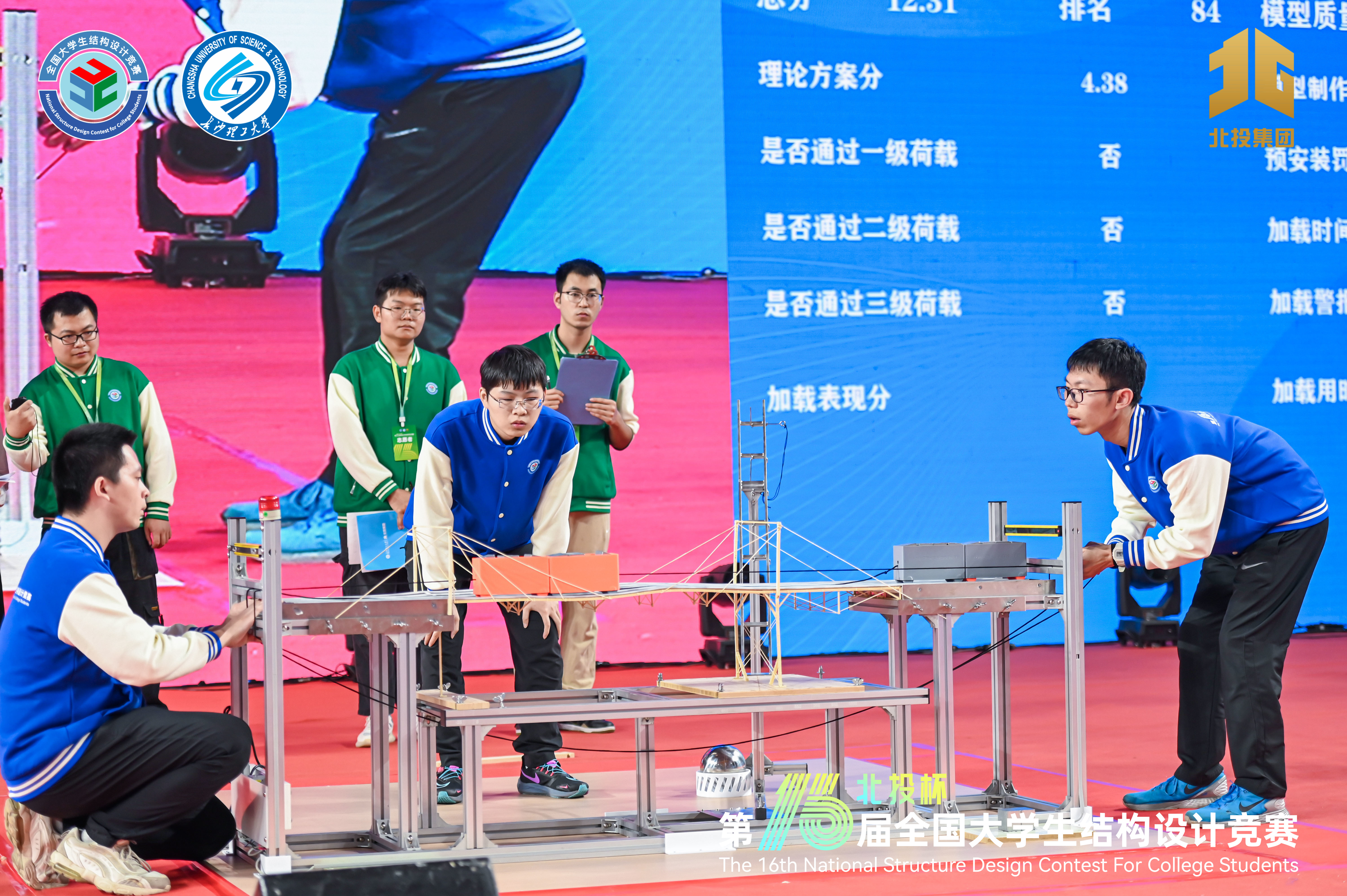 在bob体育 领导的关心支持以及土木系、学工办、教学办等相关老师的指导帮助下,参赛团队经过16.5小时现场模型制作、陈述答辩、模型加载等环节激烈比拼,克服多重困难,以排名19的成绩,获得竞赛一等奖。