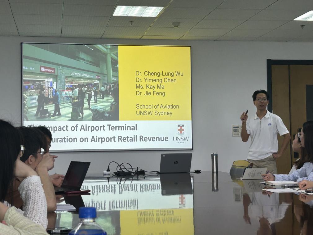 5月21日上午,澳大利亚新南威尔士大学副教授吴政隆(Wu Cheng-lung)做客bob体育 第54期“民用航空讲坛”,并作题为“The Impact of Airport Terminal Configuration on Airport Retail Revenue: An Agent-Based Simulation with Passenger Behaviour Models”的报告。bob体育官网 副院长吴薇薇、邵荃,bob体育 师生30余人参加报告会,活动由邵荃主持。