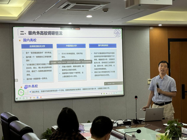 陆中从飞行器适航技术专业基本情况、人才培养、教学计划、课程建设、教材管理、毕业要求等方面进行自评估汇报,并分析了专业建设过程中面临的技术更新迅速、行业标准变化、人才培养模式等挑战。